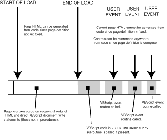File phase.htm on the CD-ROM has code similar to that of Listing 14.5, but with more details as well. There is a block of code for each specific phase of the page life. The nonprocedure code is carried out as the page is rendered. The ONLOAD event occurs after the page loads. Then the event code is carried out in response to the user-initiated event. The comments in the listing indicate the legal actions at each phase.