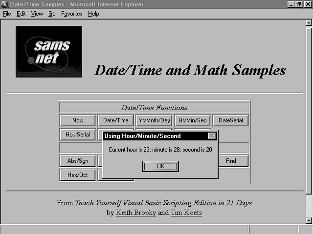 The hours/minutes/seconds information test appears, as shown in Figure 16.4, after the user clicks the test button. This code, like the other examples in this chapter, is easy to write because the functions are very straightforward to use.